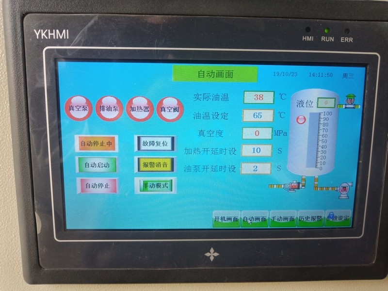 本機采用變頻器、液位變送器、溫度傳感儀、真空度傳感儀等一系列自動控制儀表采集設備運行的各種信息,交由中心處理器進行處理,自動控制整臺設備的運行并監視設備的運行狀況。本機帶有各種保護裝置(過載保護、過壓保護、相序保護、異常運行停機保護),可確保設備安全運行。真空濾油機適用于:透平油、液壓油、潤滑油、絕緣油、變壓器油、電容器油、壓縮機油